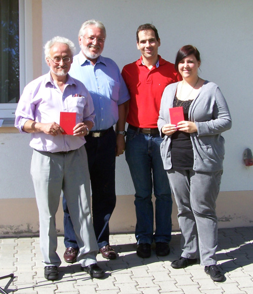 MdL Perlak bei der Parteibuch-Übergabe an die Neumitglieder Wessely und Auch-SchwelkMdL Reinhold Perlak freute sich, beim Sommerfest der Geiselhöringer SPD den SPD Stadtrat Josef Eisenhut für langjährige Mitgliedschaft ehren zu können, und zeitgleich zwei neue Mitglieder in den Ortsverein aufnehmen zu dürfen.