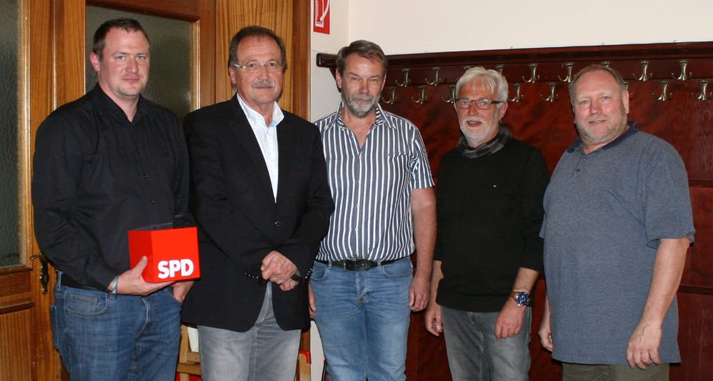 Diskutierten am 27. April bei SPD im DIALOG über die zukünftige ärztliche Versorgung in Geiselhöring: SPD- Ortsvorsitzender Michael Wittmann, Johann Ertl (2.v.li.) und Peter Roderer (Mitte), mit dabei Raf Neiser (2.v.re.) und Rainer Pasta (re.)
