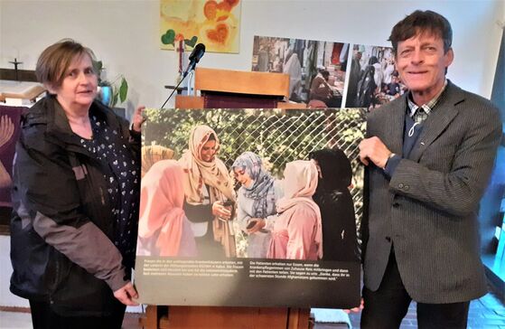 SPD-Ortsvorsitzende Barbara Kasberger und Pfarrer Ulrich Fritsch legten ihr Augenmerk auf die Rechte der Frauen und Mädchen in Afghanistan